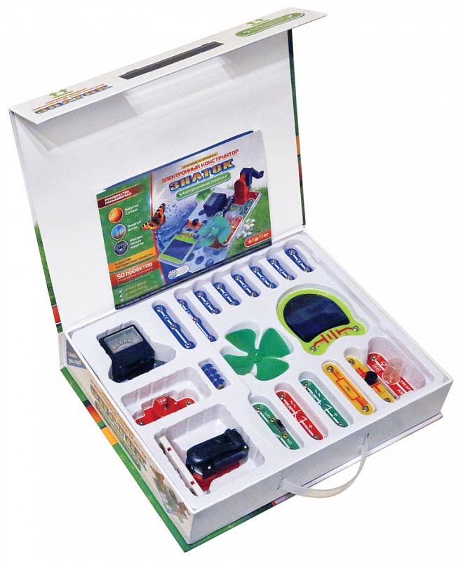 В новый конструктор «Альтернативная энергия» включены самые интересные и зрелищные эксперименты из популярного набора «Альтернативные источники энергии» , который теперь стал еще более доступным. Электронный конструктор, позволяющий ребёнку понять принципы работы ресурсосберегающих технологий, таких как: Энергия Солнца Энергия ветра Механическая энергия К конструктору прилагается цветное «Руководство пользователя» по сборке 50 проектов.
