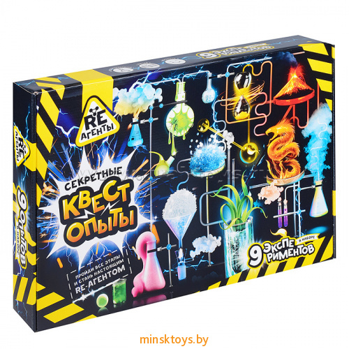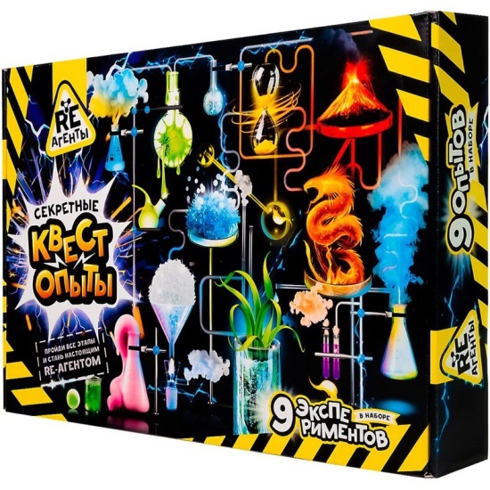 Секретная лаборатория хранит в себе множество тайн и загадок. Перед Вами 9 секретных опытов, которые необходимо провести в строго определенном порядке, чтобы лаборатория раскрыла свои секреты. Только истинный re-агент сможет провести все опыты. Сможете ли Вы пройти этот квест? Уникальный игровой процесс, позволяющий провести не только увлекательные эксперименты, но и игровой форме пройти настоящий квест. Этот набор предлагает познакомиться с химическии процессами и изучить свойства разных веществ. Все принадлежности, необходимые для успешной работы, включены в состав набора. В процессе игры дети смогут получить массу положительных эмоций, а также приобрести первые познания в науке и расширить кругозор. Хранить при температуре от +5 до +35 градусов С. Соответствует требованиям безопасности и стандартам качества продукции.