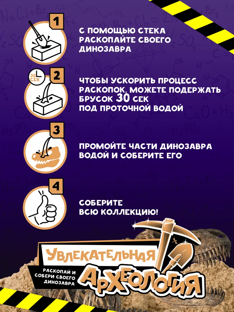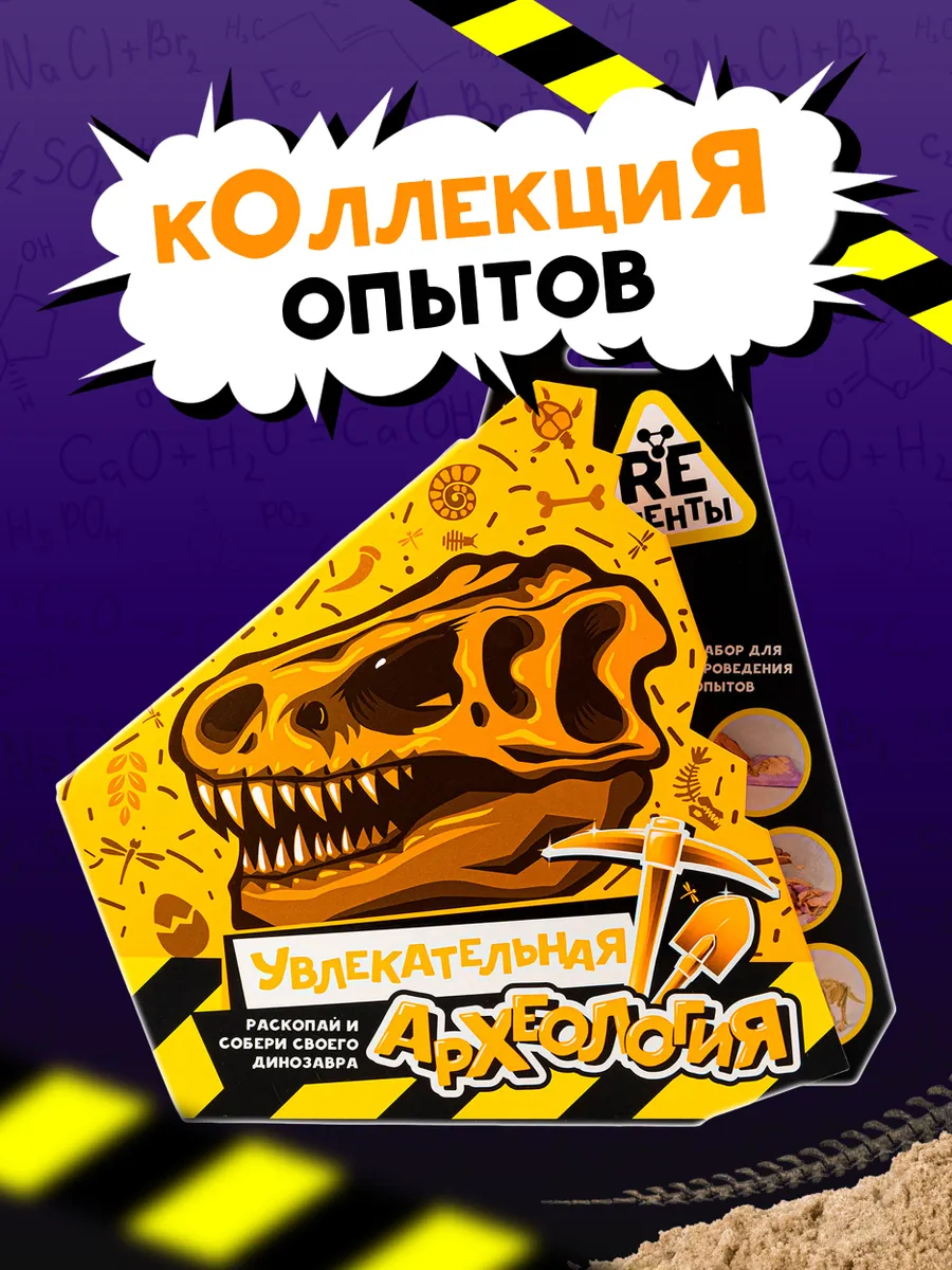 Научно-познавательный набор для опытов и эксперементов - Увлекательная археология! Современный подход к раскопкам. Один из 5 динозавров уже ждет своего исследователя! Раскопай полную коллекцию динозавров! Химические опыты и эксперименты для детей - самый интересный подарок для мальчиков и девочек на любой праздник и просто без повода! Химия - это очень простая и увлекательная наука! С Ре-агенты вы получите настоящую химическую лабораторию у себя дома. Набор юного химика для детей - это набор для опытов и творчества, анистресс для развития мелкой моторики и кругозора, который не даст ребенку скучать! Что подарить ребенку на 6, 7, 8 лет? Опыты станут отличной альтернативой любимой настольной игре ребенка или сюрпризом на день рождения, выпускной в детском саду, подарком и интерактивным уроком для всего класса в начальной школе! Re-agenty (reagenty) оценят все, ведь это не просто опыты - это магия и фокусы! Играй, изучай, веселись!