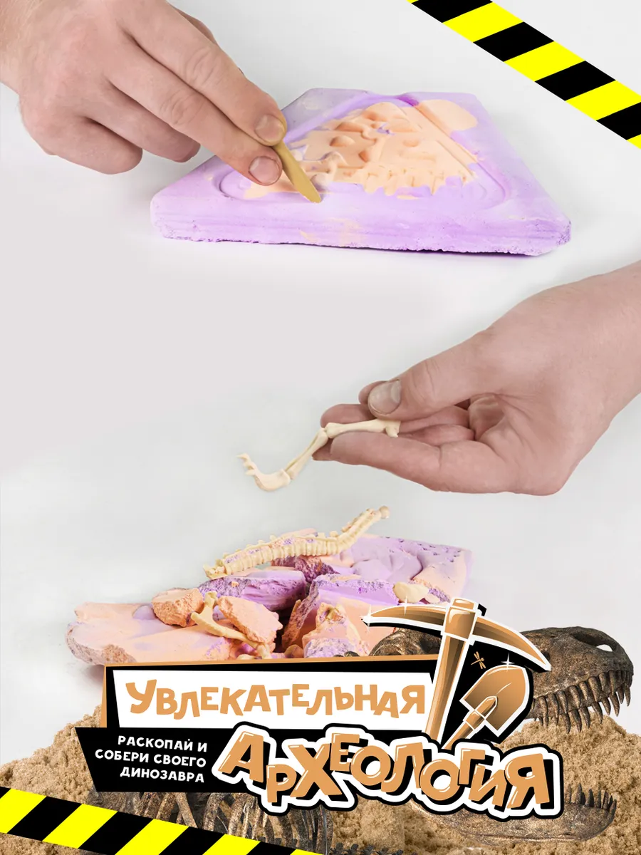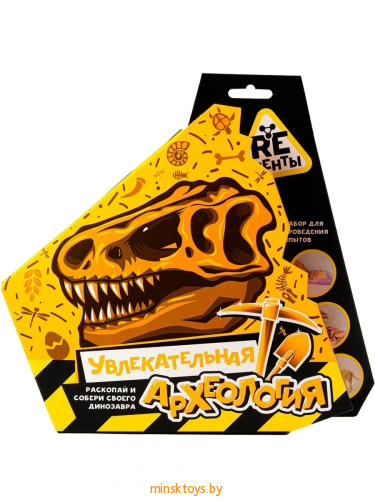 Современный подход к раскопкам! Один из 5 динозавров уже ждет своего исследователя. Улучшенная формула продукта позволяет провести познавательную и увлекательную игру. С помощью игрового набора "Увлекательная археология" Ваш ребенок сможет стать палеонтологом и обнаружить скелет динозавра! В наборе реальность показана довольно точно: открыв коробку Вы обнаружите специальный гипс, который надо раскалывать и сметать настоящими археологическими инструментами! И вот, наконец, кости найдены! Теперь нужно собрать все кости в скелет динозавтра и его можно поставить на полку! Игра раскопки динозавра пробуждает интерес и любовь к науке, учит аккуратности и расширяет кругозор. В комплекте: окаменелый пласт земной породы, археологические инструменты (кисточка, стек).