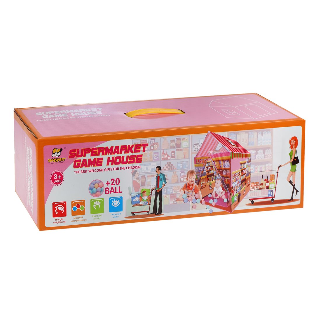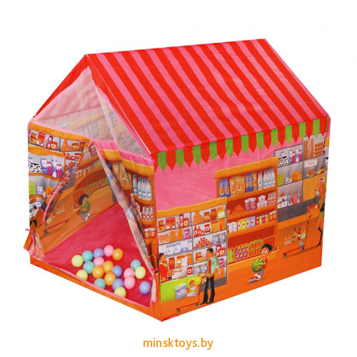 Красочная палатка «Магазин» предназначена для детских игр в закрытых помещениях. Эффектный дизайн изделия обязательно произведёт впечатление на ребёнка! Палатка имеет пластиковый каркас. Со сборкой легко справятся взрослые. В разложенном виде изделие не занимает много места, его можно компактно хранить в упаковочной коробке.