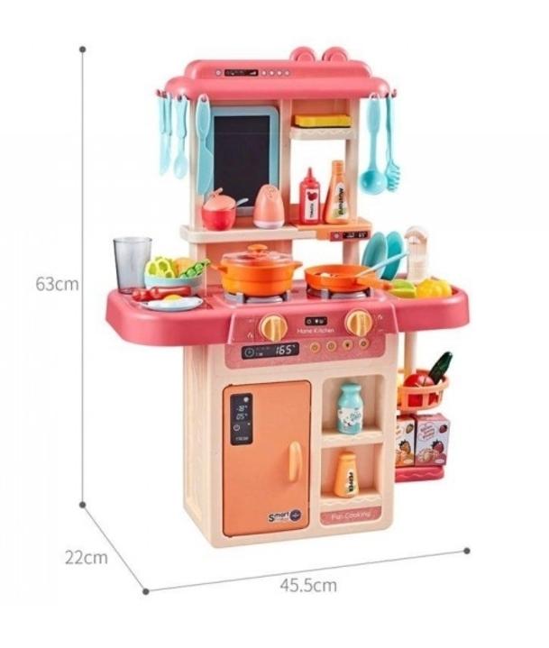 Детская игровая кухня нежно-розовой расцветки - с эффектом «холодного пара», холодильником и возможностью использования настоящей водички!