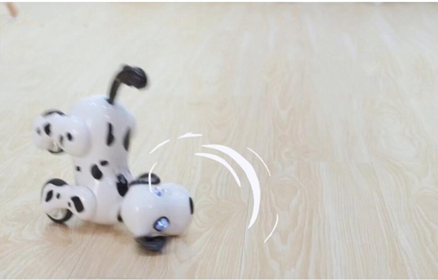 Игрушка послушно выполняет команды, поступающие с пульта дистанционного управления: резво бегает, весело лает, переворачивается, ложится и встает, разворачивается вокруг себя, а также делает выпады вперед. Управление роботом осуществляется на частоте 2.4 G.