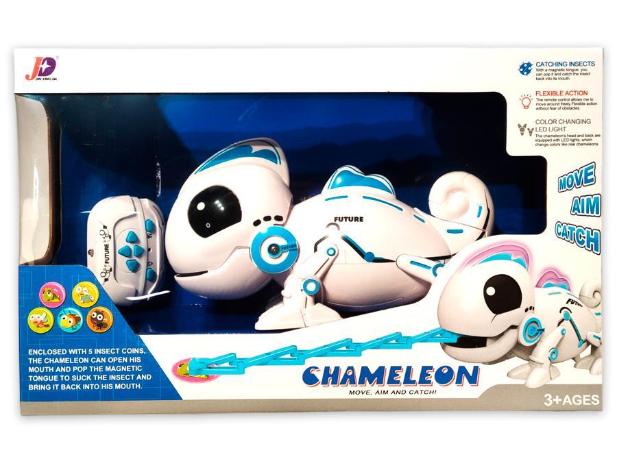 В комплект входит: робот-хамелеон, 4 жетона, пульт д/у.