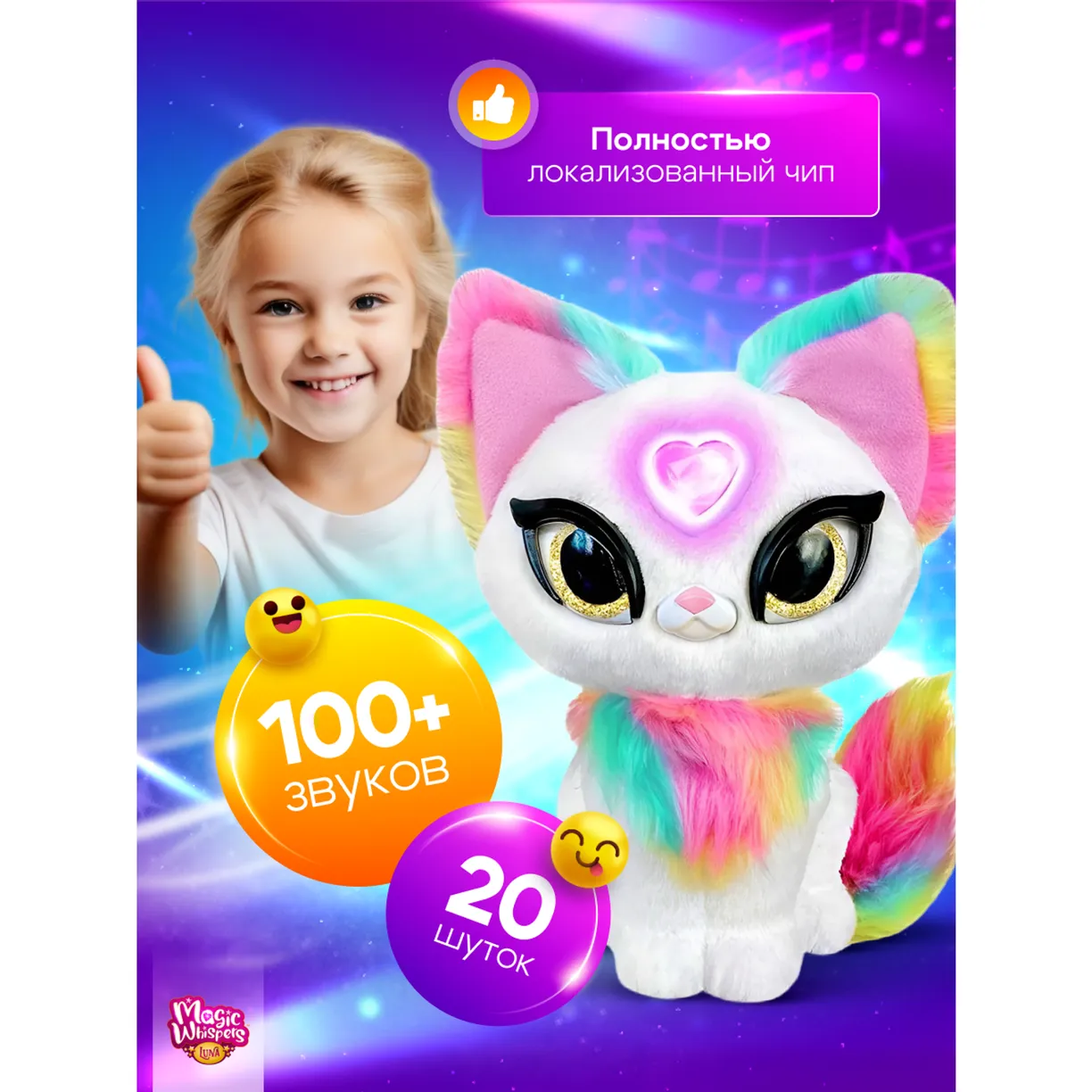 Издает более 100 звуков! Сияющее сердечко в ее лбу - волшебная кнопка, нажми на нее лбом, чтобы услышать ответ, продолжение анекдота или милый кошачий секрет!
