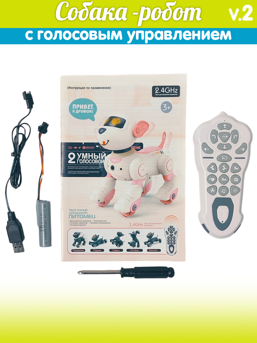 Игрушка собака интерактивная, пульт управления, аккумулятор, зарядное устройство USB, отвёртка, инструкция |