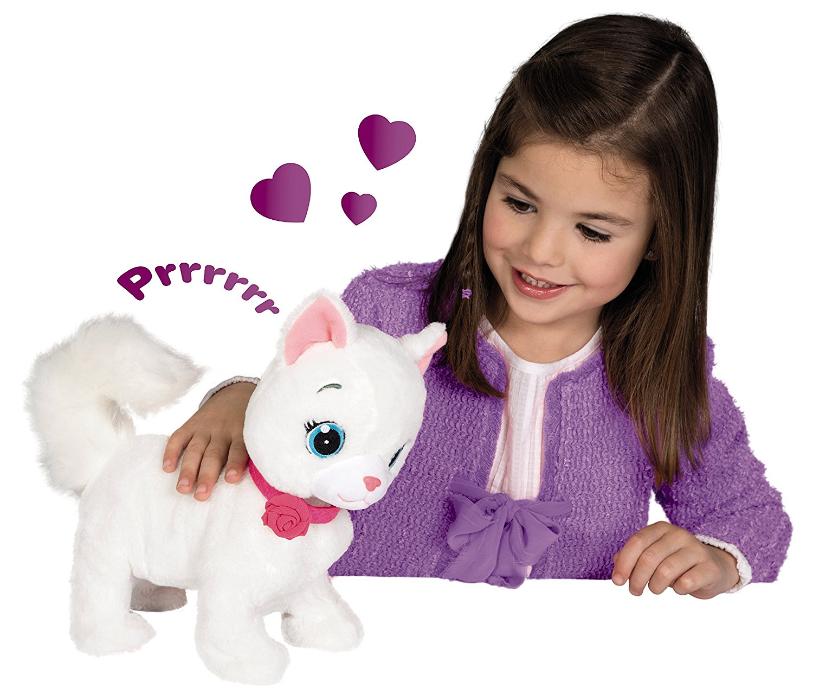 Интерактивную кошку Бьянку приятно трогать, ведь она изготовлена из искусственного меха. Белая игрушечная кошечка выполняет целых 5 действий, радуя своих маленьких хозяев. Если кошечку гладить по спинке, то она приседает, показывая своим поведением, что очень рада ласкам. Кошка Bianca умеет прятаться, ходить, мурлыкать и мяукать, что усиливает реалистичность игры. А если дотронуться до левой лапки кошечки, то Бианка может рассердиться и начнет фыркать.