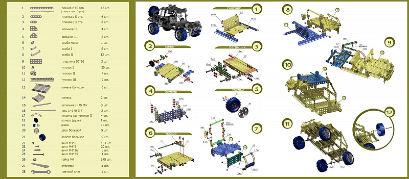 Детали конструктора, Отвертка, Гаечный ключ, Инструкция |