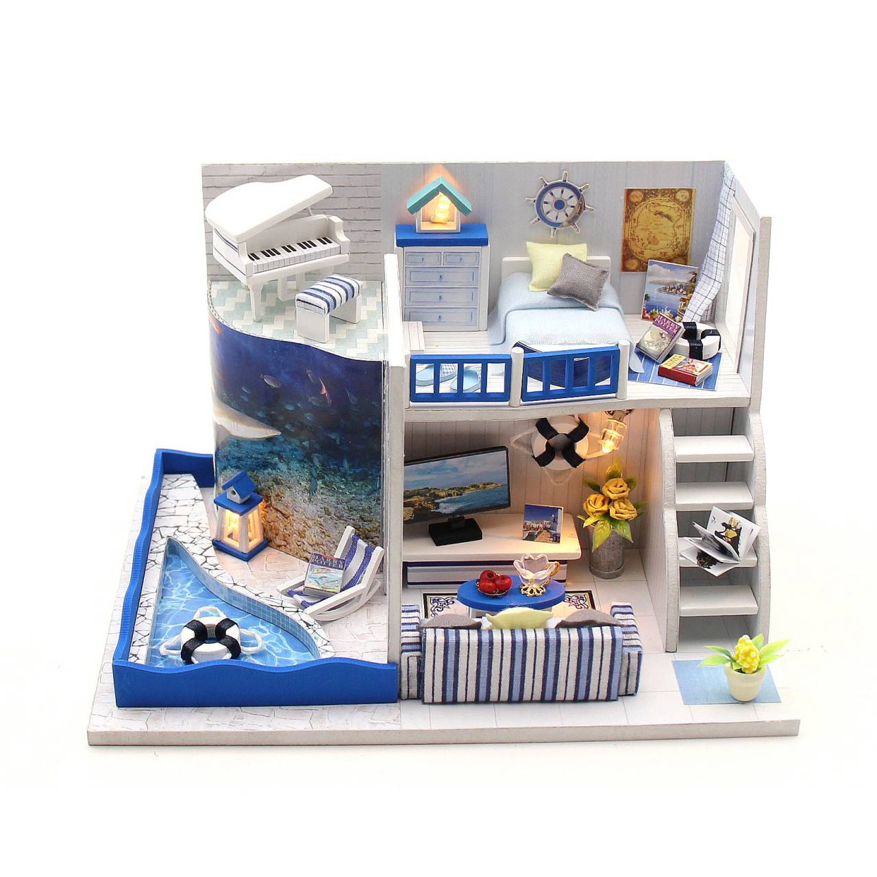 Интерьерный конструктор "Морской бриз" - конструктор-миниатюра домика на побережье с небольшим бассейном и белоснежным роялем! Бело-синий интерьер румбокса во время сборки позволяет полностью окунуться в атмосферу средиземноморского берега и напомнит о приятных солнечных днях волшебного отпуска и навеет фантазии о том, как можно беззаботно валяться на втором этаже своего дома на берегу моря на кровати в форме лодочки и наслаждаться морским бризом! Натуральные материалы для сборки - дерево, бумага, ткани. В комплект входит: все необходимые для создания миниатюры детали, светодиоды, инструменты для сборки, подробная инструкция на русском языке.