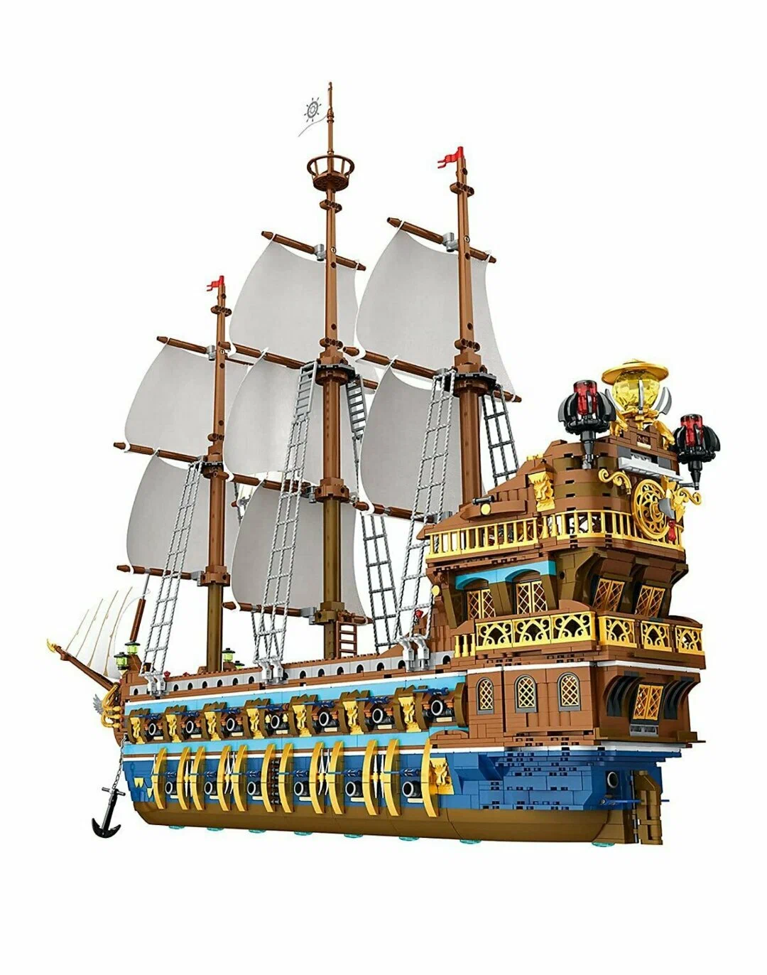 Для тех, кто мечтает о морских приключениях и отважных путешествиях, этот конструктор станет воплощением заветных фантазий. Детализированная модель парусного фрегата длиной 87 см и высотой 70 см поражает своей реалистичностью и тщательной проработкой каждого элемента.