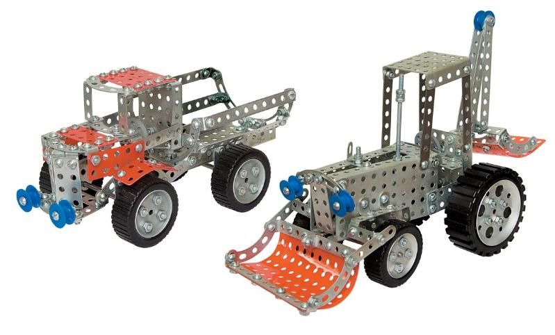 Конструктор металлический. "Грузовик и трактор" это металлический конструктор, состоящий из 345 элементов. Комплектность набора позволяет собрать ребенку две модели: трактор или грузовик. Помимо классических деталей из металла, в этот набор входят яркие пластиковые элементы, которые придадут моделям более вид. В процессе работы Ваш ребенок научится пользоваться отверткой и ключом, а также инструкцией по сборке. Понаблюдайте за малышом некоторое время, и Вы быстро определите степень своего участия в процессе. В зависимости от возраста и уже имеющихся навыков, кого то можно оставить наедине с конструктором на достаточно длительное время, а кому то придется помогать практически постоянно.