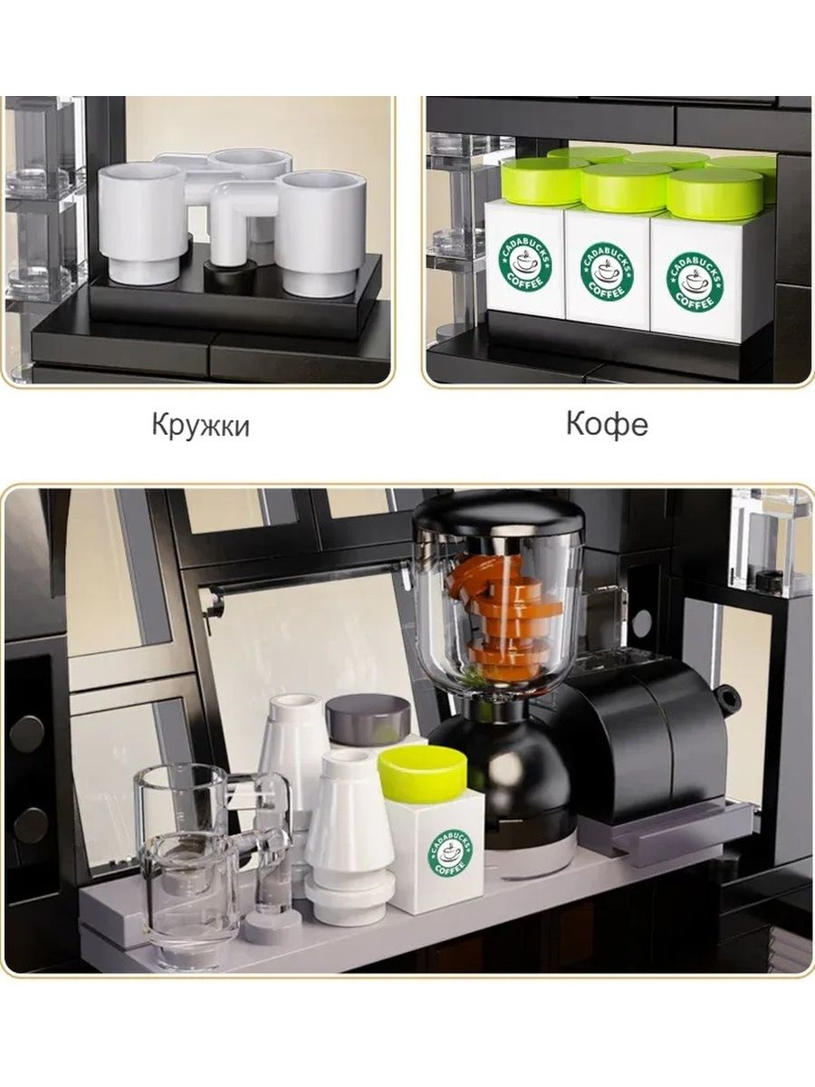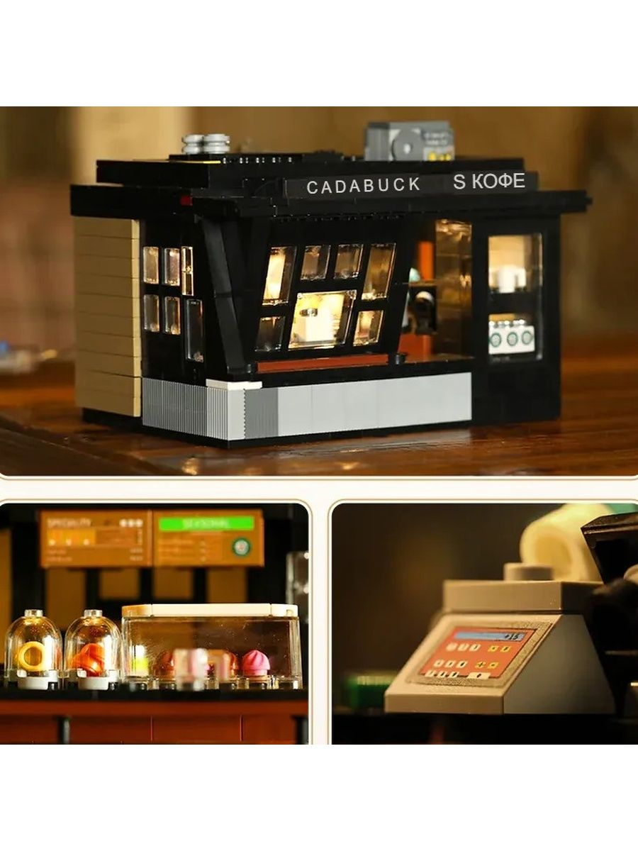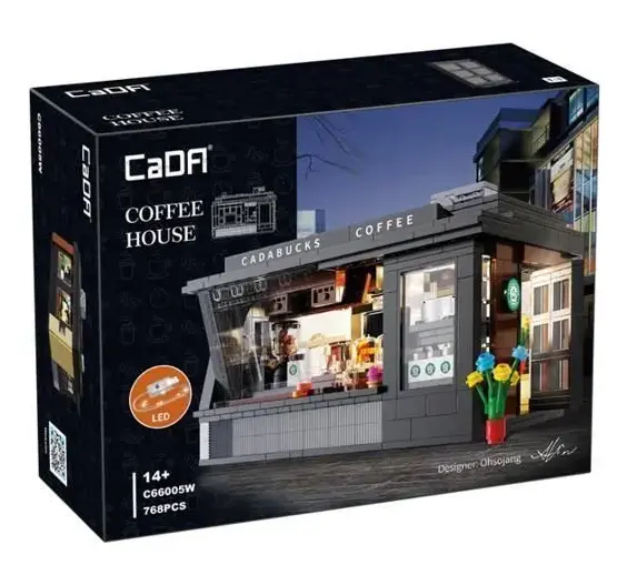 Конструктор от CADA - это набор, состоящий из 768 деталей, с помощью которого можно построить уютную кофейню. Он имеет модульную конструкцию, благодаря чему можно легко снять крышу и заднюю стену, чтобы исследовать детализированный интерьер помещения. Дверь открывается, а внутри вы найдете все необходимое для приготовления кофе. Приятным дополнением является подсветка, которая добавляет реалистичности зданию.