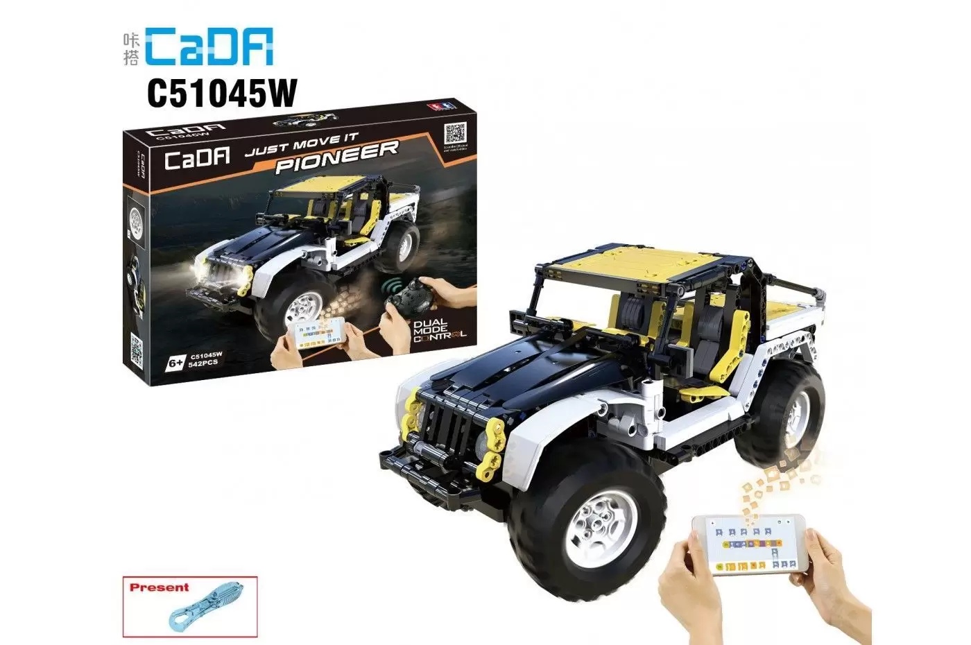 Детский конструктор CaDa C51045W представляет собой набор для постройки внедорожника Jeep Wranger Pioneer из 542 деталей! Детали в наборе отлично подогнаны друг к другу, поэтому сборка не вызовет трудностей, а собранная машинка не развалится во время игры. Модель управляется с пульта 2,4G либо по bluetooth. Светодиодные фары и задние стоп-сигналы добавляют реалистичности.