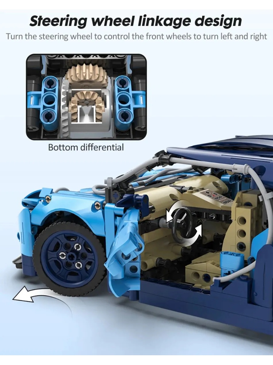 Конструктор на пульте управления машина - Bugatti Chiron Blue Phantom, CaDa C61028W
