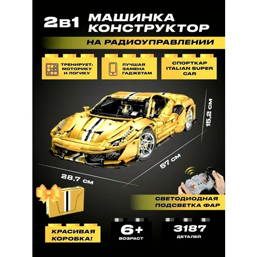 Конструктор CaDA представляет собой набор для сборки масштабной модели спорткара в пропорциях 1:8, состоящий из 3187 деталей стандарта Technic. Желтый итальянский суперкар сочетает в себе высокую детализацию и функциональность радиоуправляемой модели.