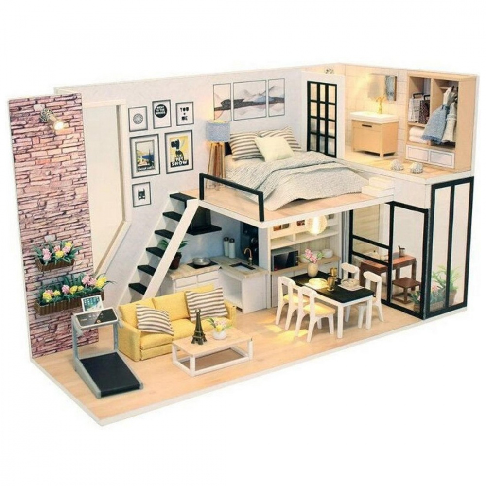 Интерьерный конструктор "Студия в стиле модерн" с подсветкой - это набор для создания удивительно детализированного кукольного интерьера в миниатюре. В студии есть светлая спальня, крошечный санузел, гардеробная, просторная гостиная с диванчиком и беговой дорожкой, уютная обеденная зона с современной бытовой техникой и стильной посудой и даже небольшая лаунж-зона. В наборе, состоящем из 236 элементов, вы найдёте все необходимое для творчества. Сборка мельчайших деталей уютного интерьера поможет развить усидчивость и аккуратность. Завершающим штрихом моделирования станет проводка светодиодной подсветки. Все наборы серии выполнены из качественных материалов и имеют красивую подарочную упаковку.