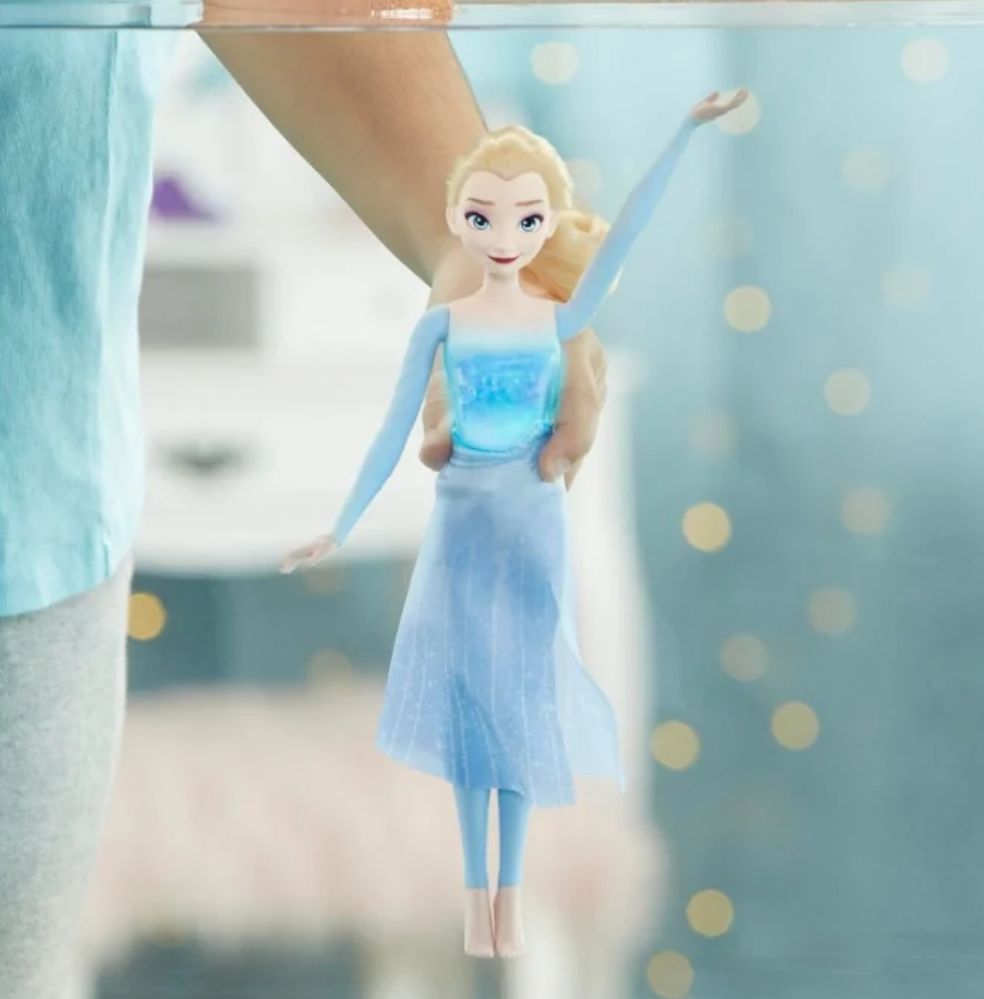 Теперь с куклой Эльзой дети могут воссоздать великолепные подводные сцены из мультфильма "Холодное сердце 2"! Когда любимая героиня погружается под воду, то она светится истинным величием Снежной Королевы.