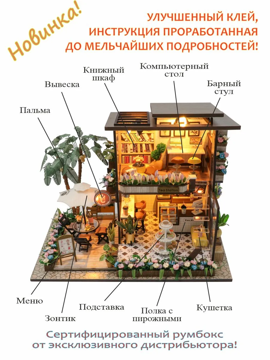 Румбокс "Чайный дом" от официального дистрибьютора Hobby Day. Товар полностью русифицирован. Интерьерный конструктор "Чайный дом" M2231 - это готовый набор для творчества, внутри которого вы найдете все необходимое, чтобы воссоздать собственными руками кукольный интерьер в миниатюре.