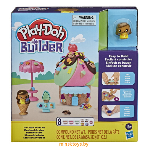 - С набором для лепки от Плей-До малыши смогут построить и украсить собственное кафе, в котором посетители будут лакомиться мороженым в жаркий день