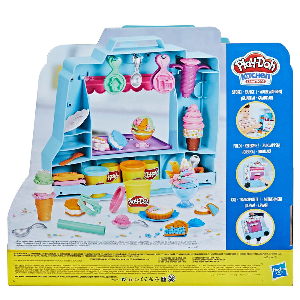 Когда игрушечный грузовичок с мороженым приезжает в ваш район, к нему сбегается вся детвора! С этим набором от Плей-До малыши могут составить более 250 возможных комбинаций десертов и поделиться ими с семьей и друзьями. В творческом процессе им помогут 20 инструментов и 5 баночек с массой для лепки Плей-До! Инструменты можно хранить в самом наборе, а навес складывается для удобного хранения. Кто откажется от порции Play-Doh мороженого?