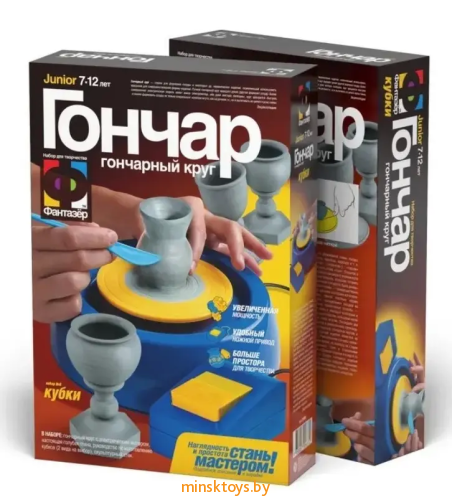 гончарный круг с электрическим мотором, настоящая голубая глина, руководство по изготовлению двух вазочек. |