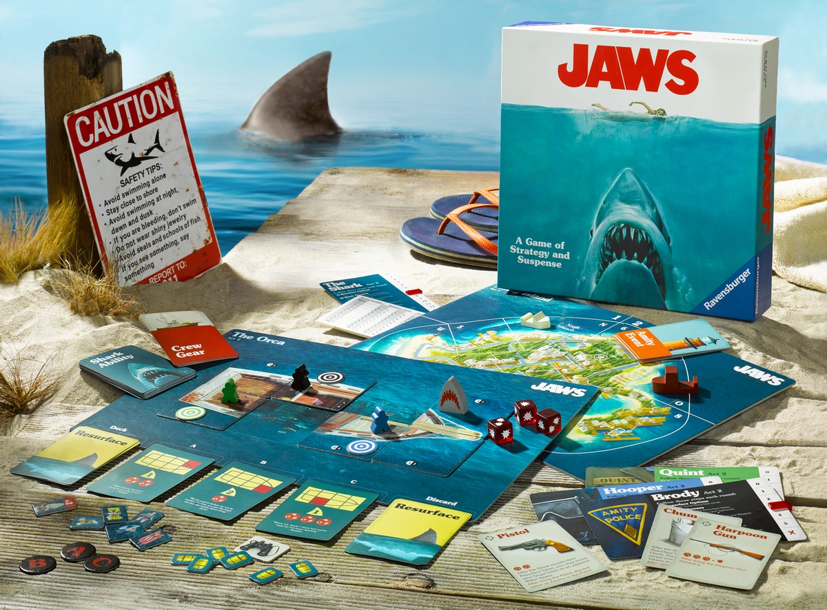 Один игрок выбирает в качестве персонажа Акулу. Остальные игроки выбирают в качестве персонажей Квинта, шерифа Броуди и Хупера – членов Экипажа, которым предстоит работать сообща, чтобы устранить Акулу. Игра состоит из двух действий, причем успех в Действии 1 обеспечивает преимущество в Действии 2. Также можно разыграть каждое действие по отдельности в качестве более короткой партии.