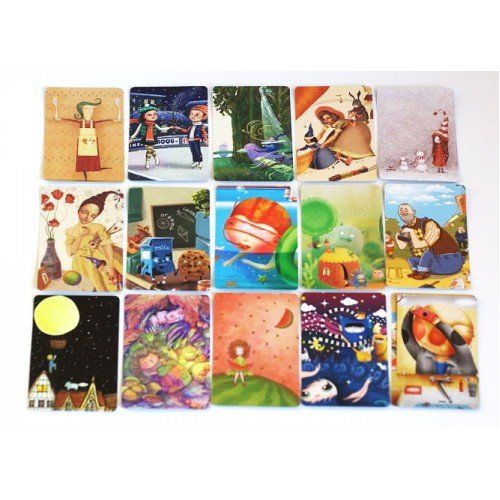 Каждый участник получает в руки 6 карт с разнообразными изображениями. Ведущий выбирает одну из своих картинок и сочиняет к ней ассоциацию. Другие игроки выбирают из своих шести что-то наиболее подходящее по смыслу и складывают их на стол рубашками вверх. Потом ведущий перемешивает получившуюся колоду и раскладывает в произвольном порядке. Цель данного этапа – понять, какой рисунок был выбран первым.