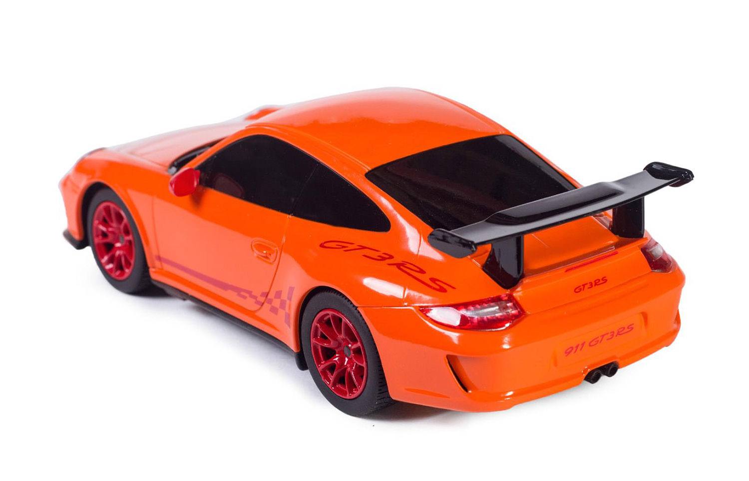 Автомобиль Porsche версии GT3 RS характеризуется двухцветным исполнением кузова, в данном случае это сочетание черного и красного цветов. Машина особенно понравится любителям радиоуправляемых моделей и поэтому подойдет не только для коллекционирования, но и для увлекательной игры.