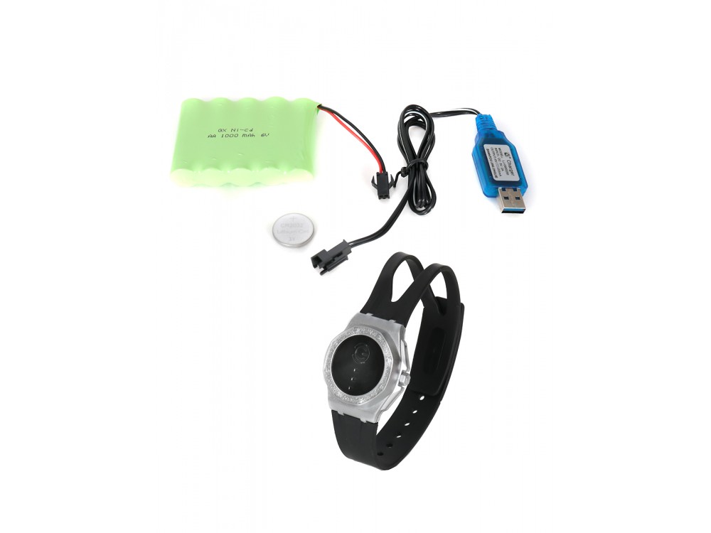 Управление осуществляется при помощи классического пульта или жестами. Просто перемещайте ручки на корпусе пульта или опустите кулак с надетым браслетом вниз, и автомобиль поедет вперед. Повороты и задний ход выполняются интуитивно понятно, просто по мановению руки. Внедорожник легко едет по грязи, по песку, по камням и не боится наклонных поверхностей, а шарнирно сочлененная конструкция гарантирует максимальную устойчивость и отличное сцепление колес.