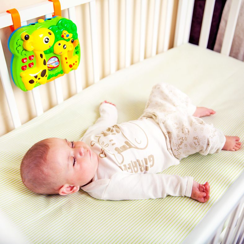 С помощью специальных креплений игрушку можно подвесить на кроватку, чтобы вовлечь малыша в интересную игру и занять его на некоторое время. Центр работает в трех режимах. В первом режиме малыш может нажимать на разные кнопочки, включая музыку и звуки природы. В этом режиме птичка и жирафики светятся. Еще ребенок может покрутить мельницу пальчиками, рассматривая разные картинки на ее лопастях. Во втором режиме - режиме проектора - малыш сможет наблюдать на потолке за меняющимися картинками.