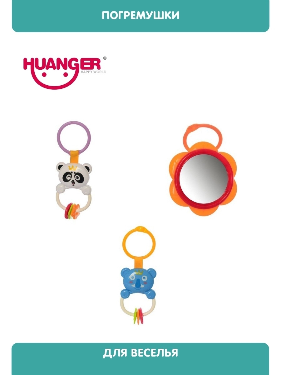 Коврик имеет дугу с 4 игрушками - погремушками и зеркалом.