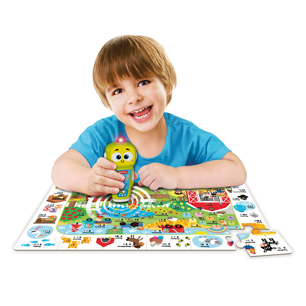 Перед началом игры ребенку нужно самостоятельно собрать большое игровое поле-пазл. Затем можно знакомиться с животными фермы вместе с роботом Робби. Для этого нужно просто ставить робота на штрихкоды возле картинок – он будет говорить и петь. После обучения можно проверить знания – робот Робби предложит множество умных вопросов, оригинальных загадок, веселых заданий. В такой игровой форме узнавать новое гораздо интереснее!