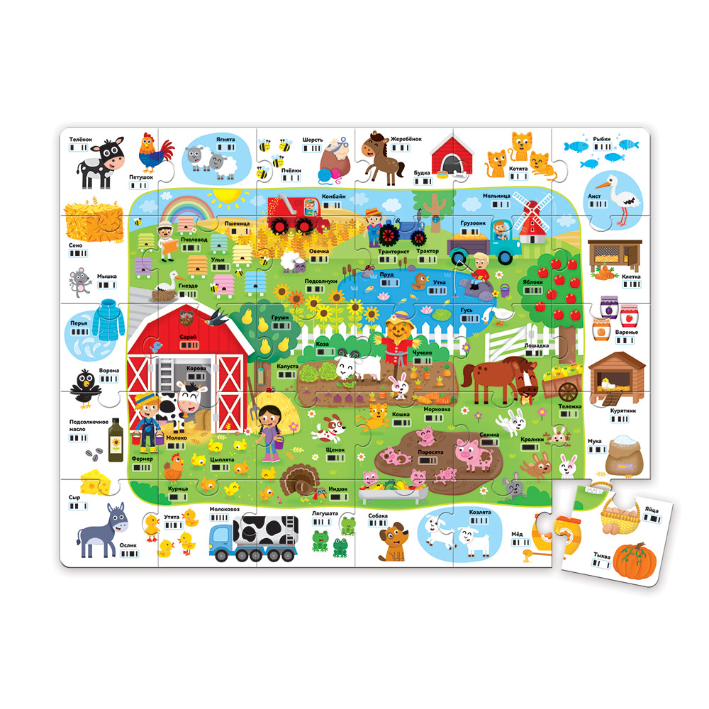 В игровом наборе «Ферма Первые знания» ребенок найдет говорящего робота со сканером штрихкодов и пазл из 30 элементов.