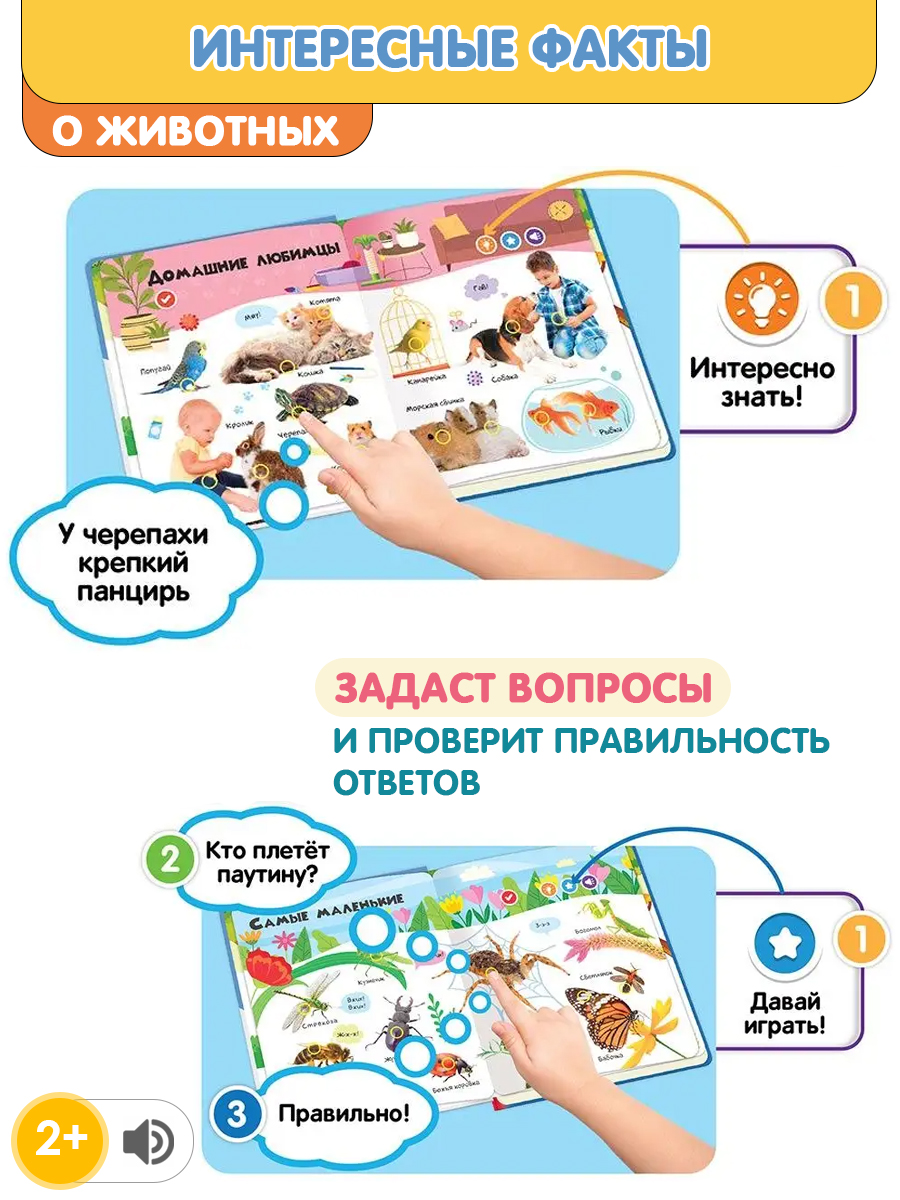 Новогодний подарок для маленьких мальчиков и девочек, эта интеллектуальная развивающая игрушка поможет вашему ребенку развить свои навыки речи, памяти и воображения. Узнавайте названия животных, слушайте интересные факты и проверьте свои знания – все это доступно в одной книжке.