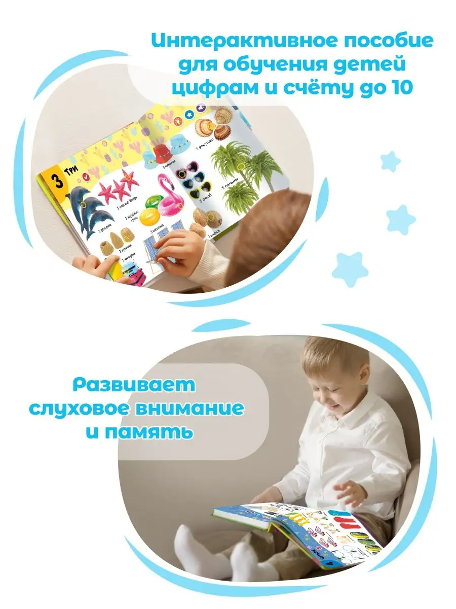 Книжка имеет 3 режима на каждом развороте: слушаем названия цифр, узнаем интересные факты о каждом изображении и выполняем задания. Кроме того, у книжки есть регулировка громкости, что позволяет настроить подходящую громкость звука в соответствии с предпочтениями ребенка.