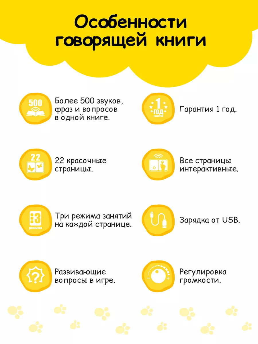 Говорящая книжка «Цвета» разработана с учетом возрастных особенностей малышей и специально предназначена для развития речи и воображения. Более 500 фраз и заданий на выбранную тему помогут их быстрее запомнить, а приятные звуки и разнообразные мелодии создадут атмосферу веселья и увлечения. Реалистичные звуки помогут ребенку быстрее запомнить информацию и получить новые знания.