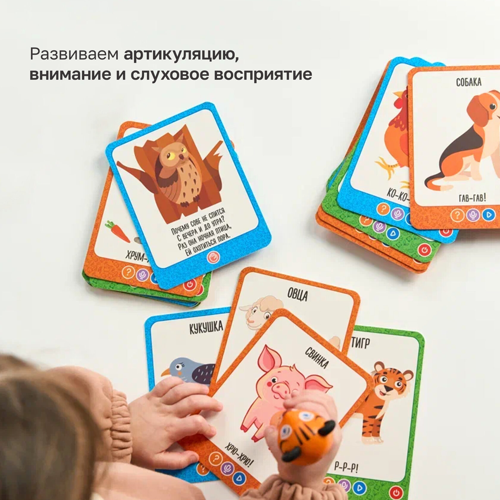 Этот уникальный комплект включает 30 двусторонних карточек с изображениями различных животных. Карточки содержат более 200 звукоподражаний, логопедических упражнений, заданий на развитие моторики и речевых навыков. Особенность набора – совместимость с популярными логопедическими игрушками: Пандой Тичи, Тигрёнком Рыки и Собачкой Булей, что делает обучение еще более увлекательным и эффективным.