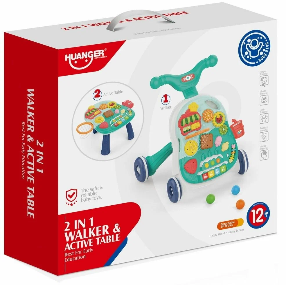 Интерактивные ходунки и обучающий стол 2в1, со звуками, Huanger HE0814