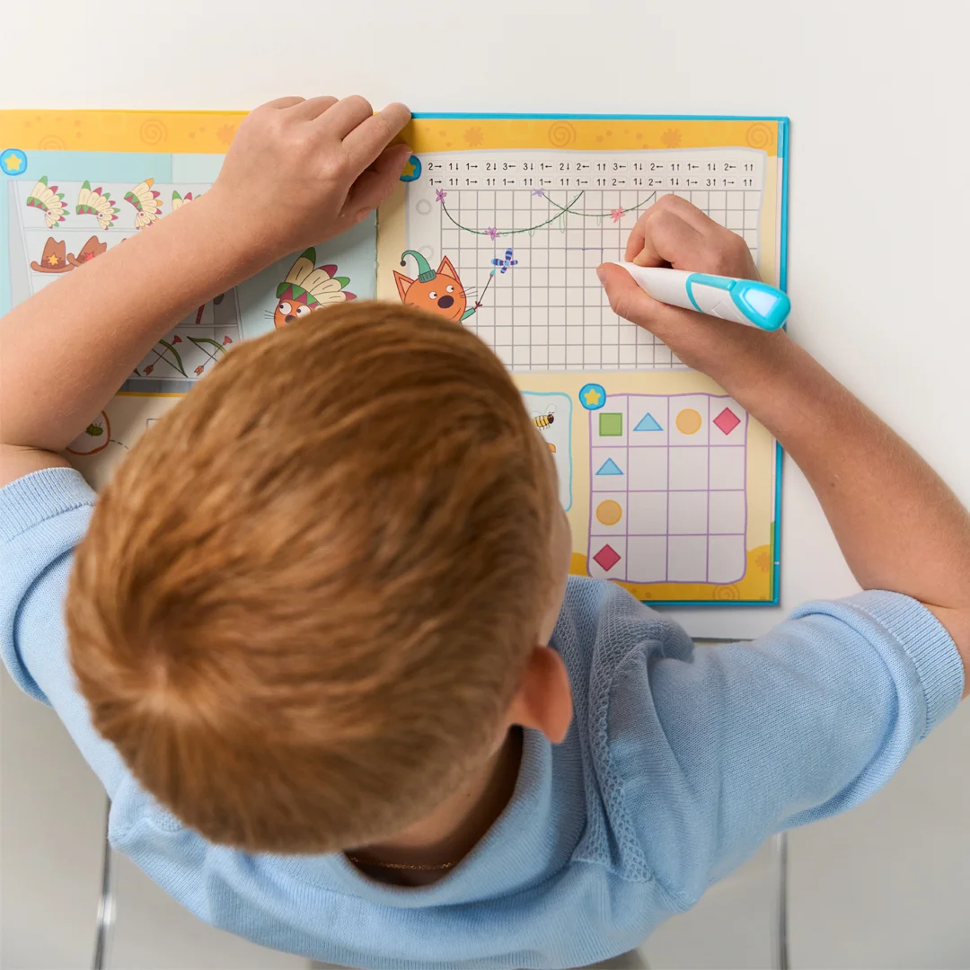 При прикосновении к иконке со звёздочкой с помощью говорящей ручки звучит задание — обвести, прописать или нарисовать. Все задания рассчитаны на самостоятельное выполнение ребёнком без помощи родителей.