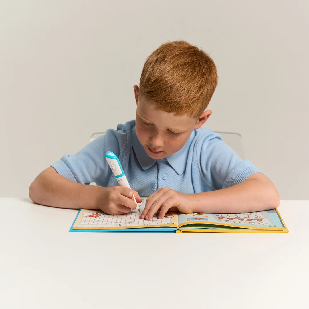 Говоручка быстро обучает навыкам письма, озвучивает все изображения и тексты в книге, самостоятельно дает задания для практики написания, а чернила исчезают, позволяя писать заново.