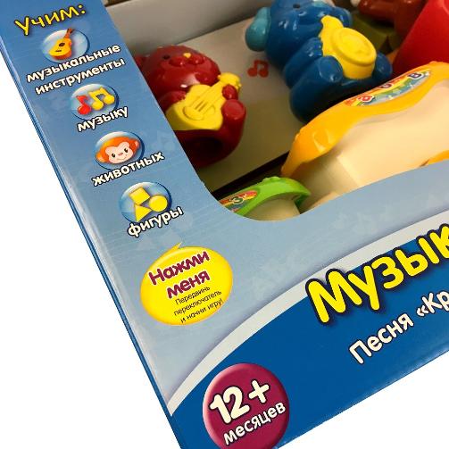 С этим замечательным поездом малыш сможет выучить геометрические фигуры, научится различать животных и музыкальные инструменты, ну и, конечно же, послушать музыку - музыкальный поезд проигрывает 2 песенки из мультфильма.