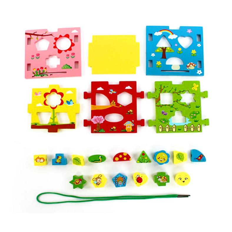стенки куба - 6 шт., фигуры - 15 шт., шнурок. |
