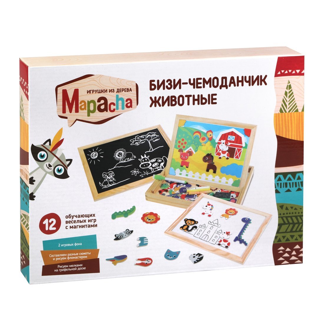 Бизи-чемоданчик - Животные, двухсторонняя доска для рисования, Mapacha 76839
