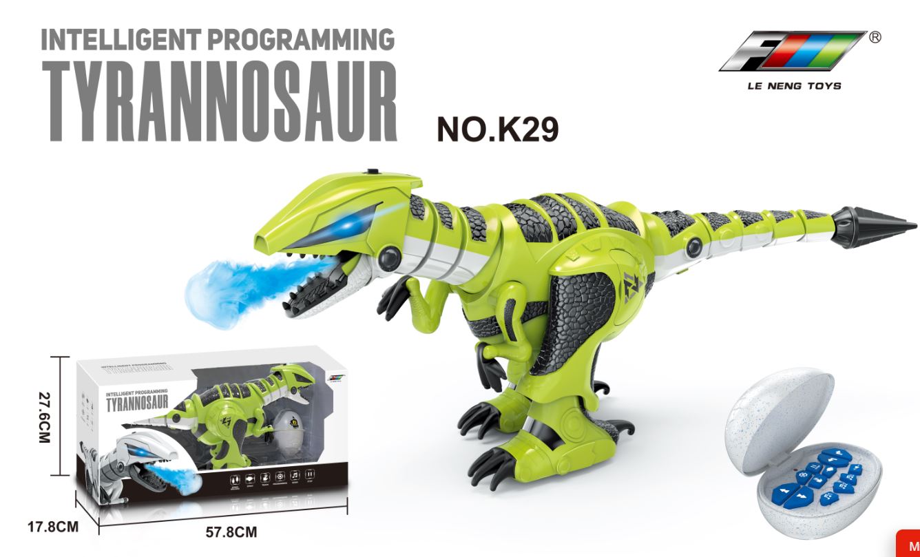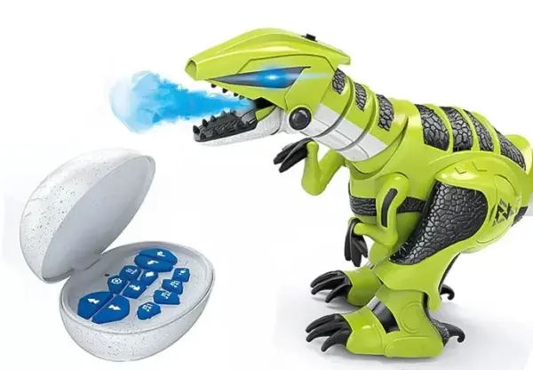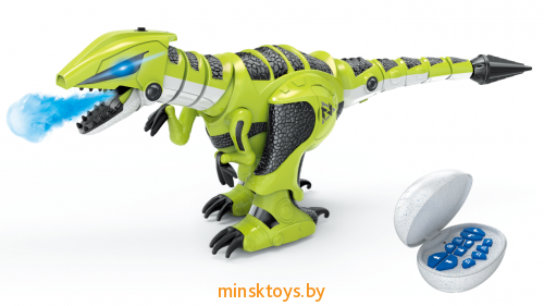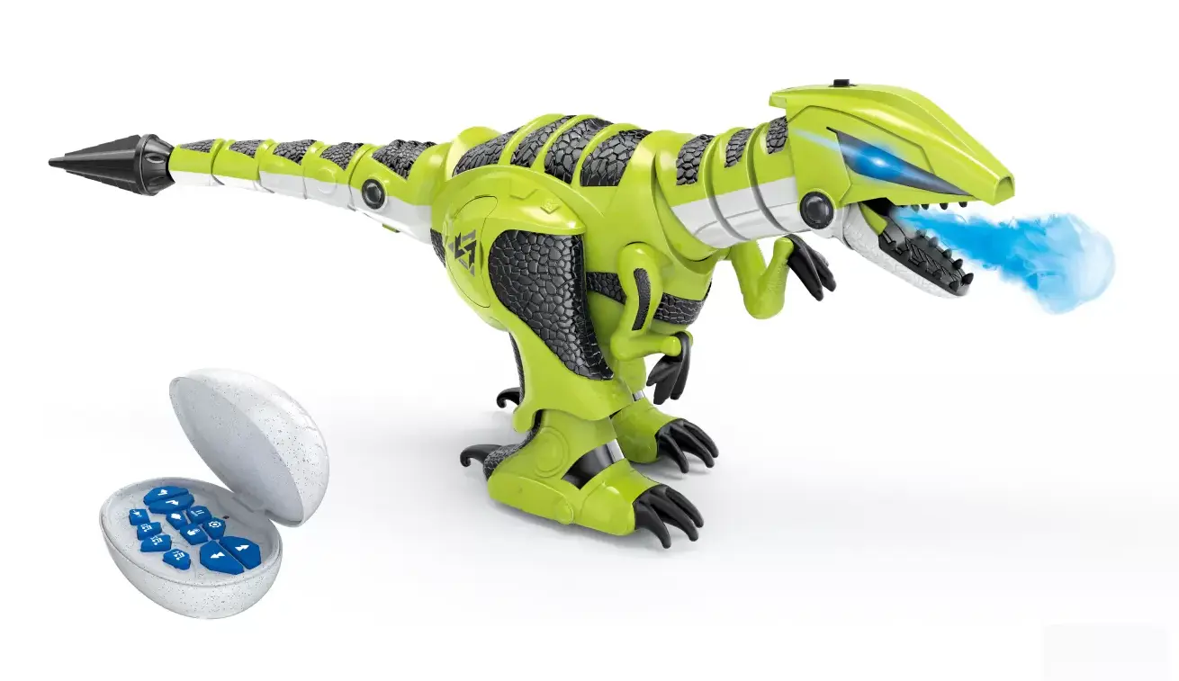Радиоуправляемый интерактивный динозавр может ходить в нескольких режимах, разворачиваться в обе стороны, проигрывать музыку. А также робот выпускает пар изо рта. Пар в свою очередь подсвечивается лампочками, что создаёт эффект огня.