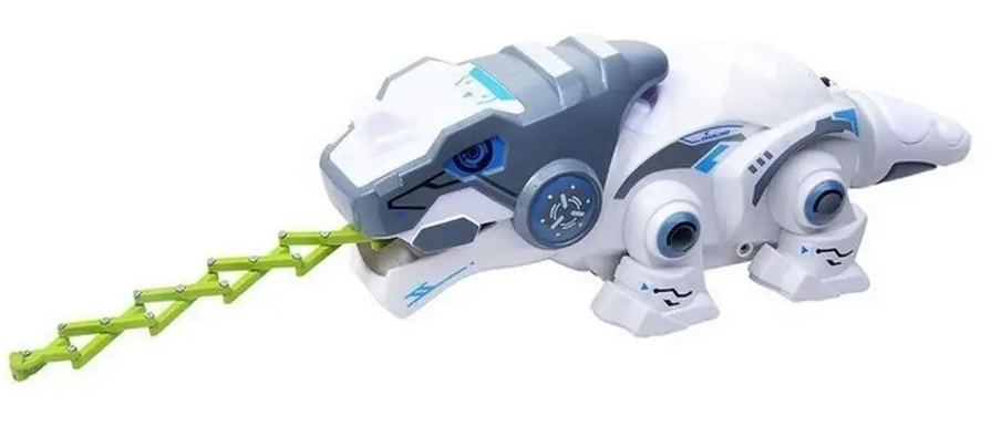 Движения динозавра хамелеона полностью контролируются с пульта дистанционного управления. Стики отвечают за движение и поворот, а обычные кнопки за ловлю еды с помощью языка (игрушка хватает языком магнитных насекомых) и дополнительные функции. Очень функциональная и интересная игрушка, идеально подойдет детям для знакомства с радиоуправляемыми игрушками.