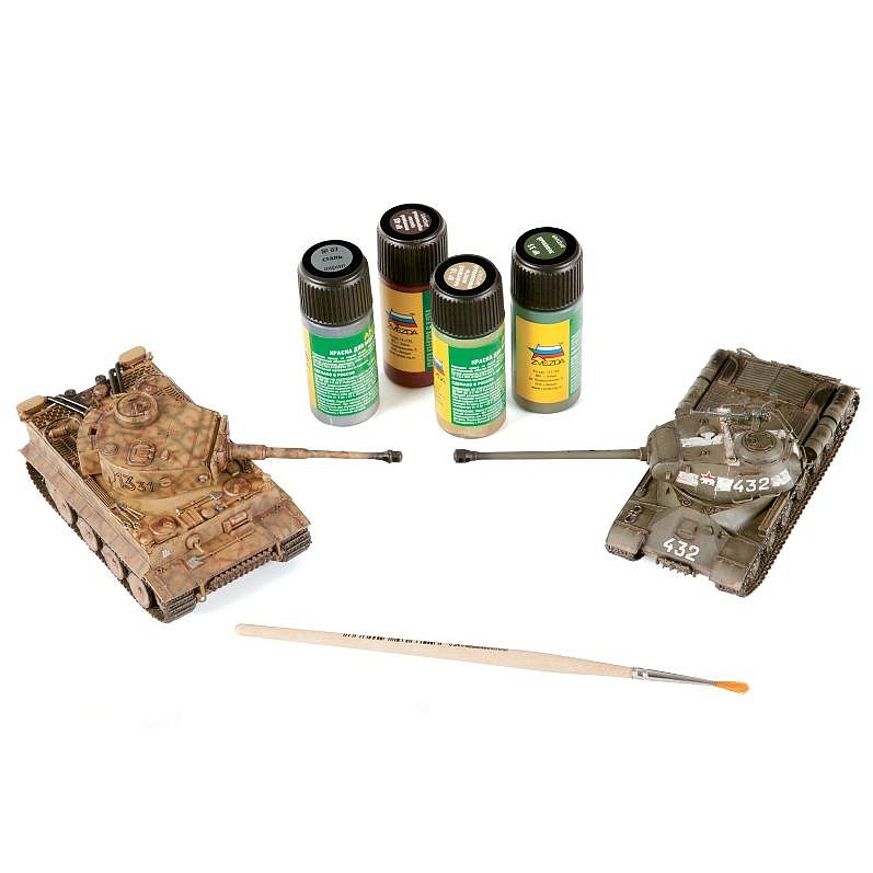 Данный набор позволит ребенку создать тщательно выполненные масштабные копии двух самых известных танков Второй мировой войны: немецкий «Тигр» и советский «ИС-2». В процессе сборки ребенок не только научится аккуратности и терпеливости, но и узнает много новых интересных фактов об этих моделях военной техники, которые сможет почерпнуть из красочной брошюры, входящей в комплект. Помимо всего прочего, в набор входят краски и кисточки, что позволит юному моделисту раскрасить модели и сделать их еще более правдоподобными.
