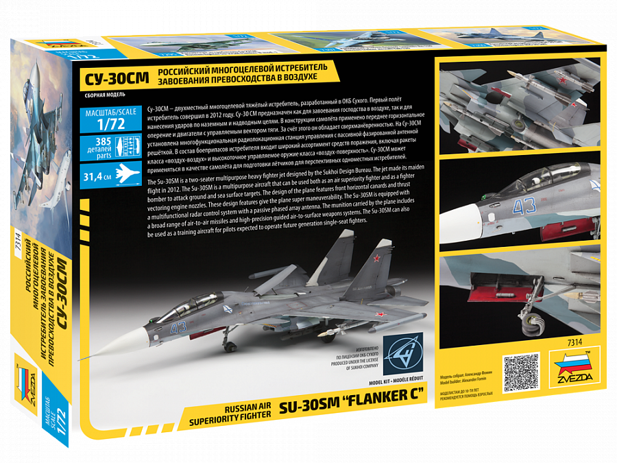 Российский многоцелевой истребитель Су-30 СМ, сборная модель, Звезда 7314з