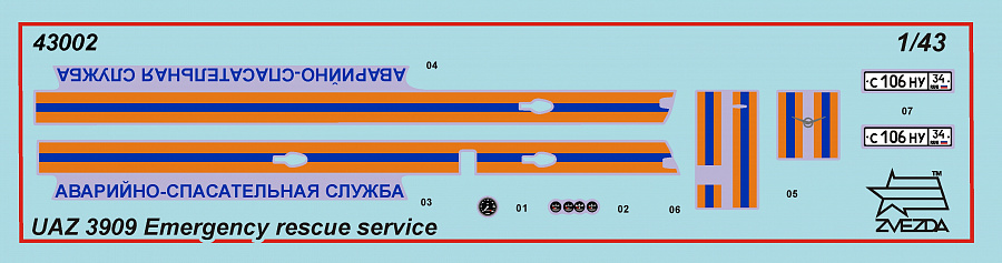 Модель сборная - Автомобиль аварийно-спасательной службы УАЗ 3909, 1/43, Звезда 43002з
