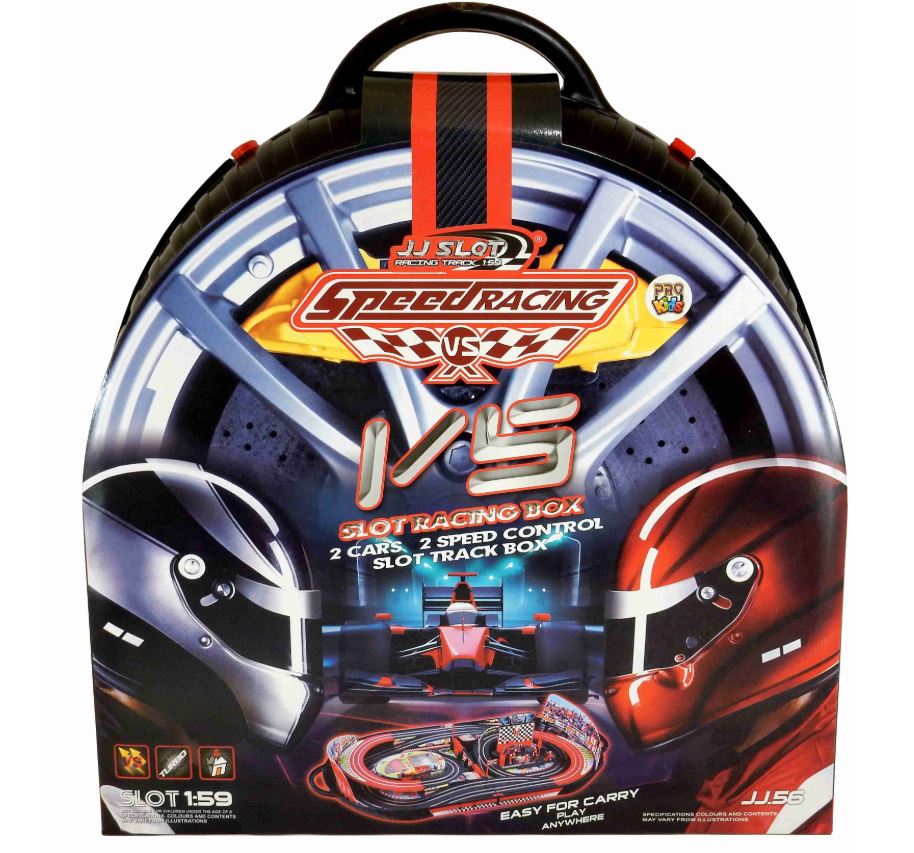 Трасса упакована в удобный чемодан, что позволяет легко брать её с собой к друзьям или на пикник. Быстро разложите трассу и начните удивительную гонку, полную эмоций и адреналина!
