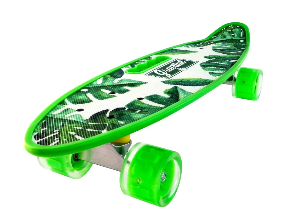 Скейтборд (пенни борд) с ручкой - Тропики, светящиеся колёса, 885/16mi